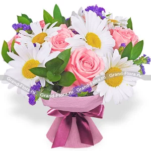 Летнее чувство - букет из ромашки и розы