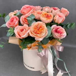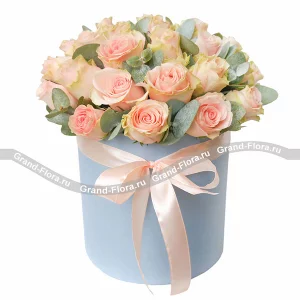 Нежность дня - шляпная коробка с розовыми кустовыми розами