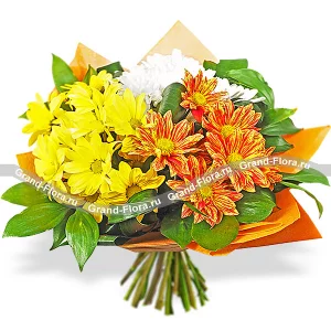 Апрельское утро - корзина из кустовой хризантемы и роз