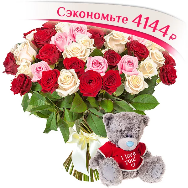 51 роза: роза разноцветная - 51 шт. (высота розы - 50 см),