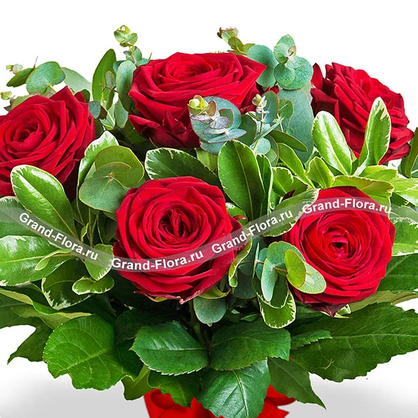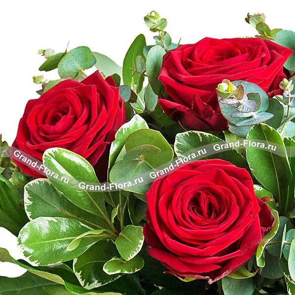 Дорогому человеку - букет из красных роз с зеленью! Акция 9 роз по цене 7!