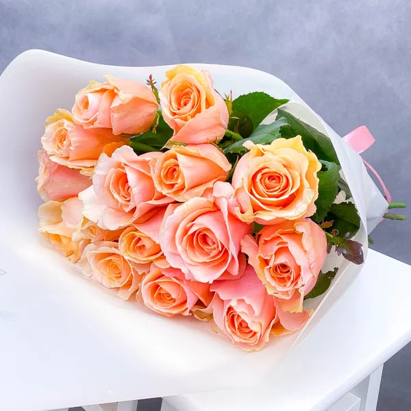 Букет розово-персиковых роз 50 см