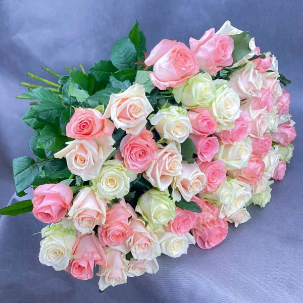 Аромат нежности – букет из белых и розовых роз (50-60 см)