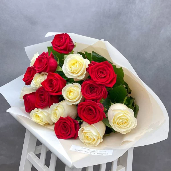 ОТЗЫВЫ О БУКЕТЕ «Букет красных и белых роз в упаковке (50-60 см)»